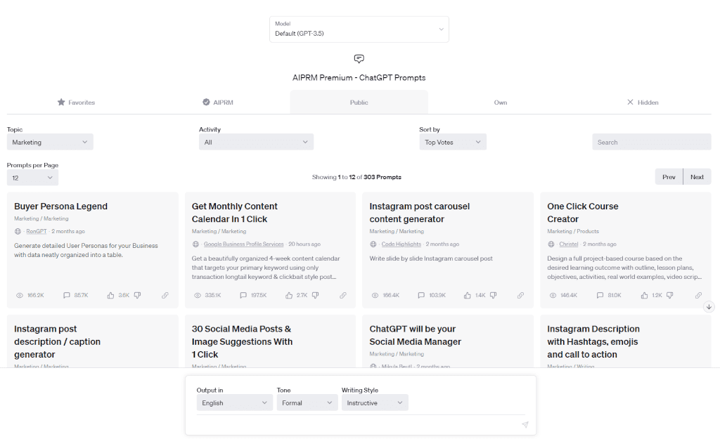 AIPRM integrates directly with ChatGPT and allows the user to select prompts based on their needs. Looking to create a training course for your new employees? How about a 30 day social media calendar with descriptions, hashtags and image suggestions? Perhaps, you need blog topics for your cleaning website. AIPRM helps you do all of this and much, much more.