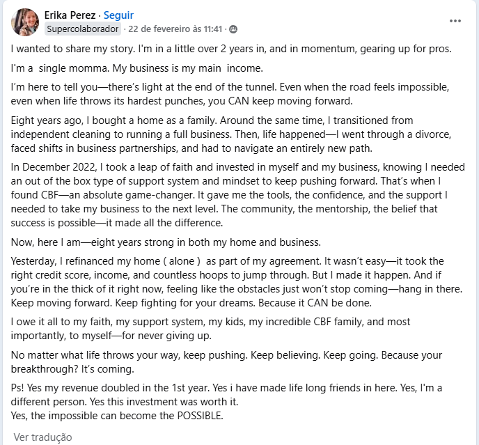 "CBF is a business system that can work for anybody. It helps you think so much bigger,